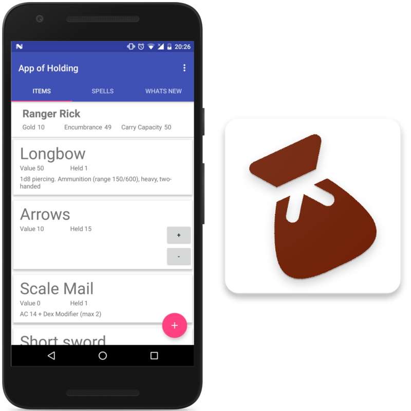 This application allows a player of tabletop RPGs to easily manage their characters inventory without the use of pen and paper. The app allows a player to add an item to their inventory, store gold values, automatically calculate encumbrance and sell items. I begun development in early April 2017 and soon released the first version to the Google play store. So far it has received great feedback from the community, and at the time of writing has over 12,500 downloads. I plan to continue development and add many of the features suggested by fans.